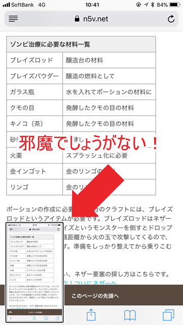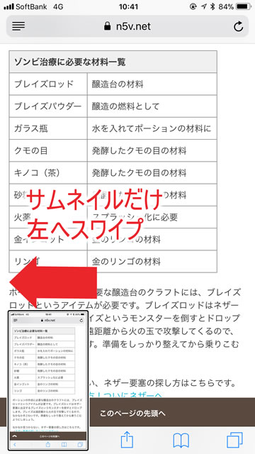 そのサムネイルを左にスワイプすれば即座に消すことができる。